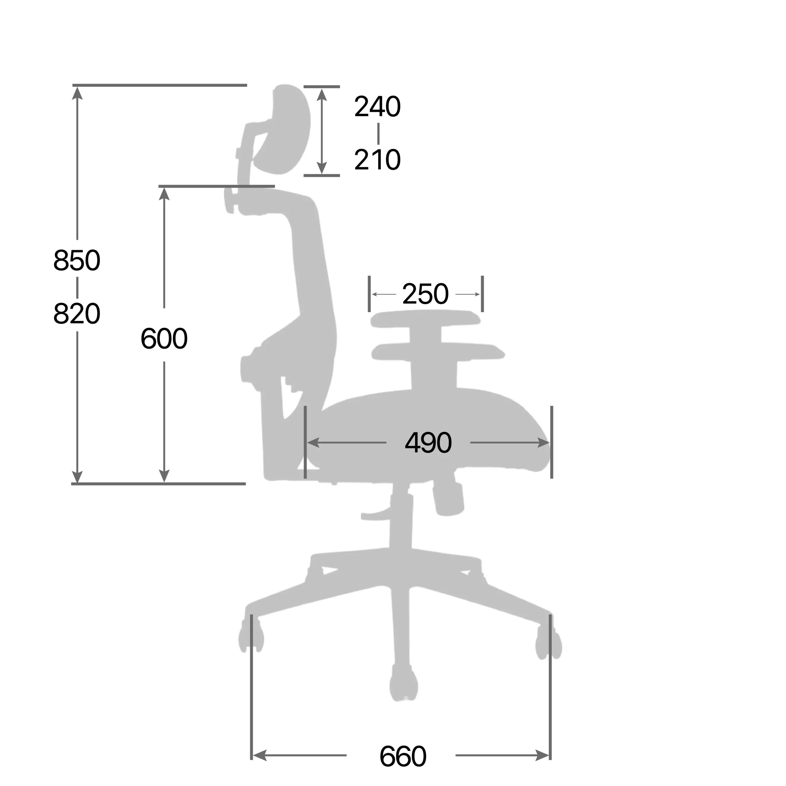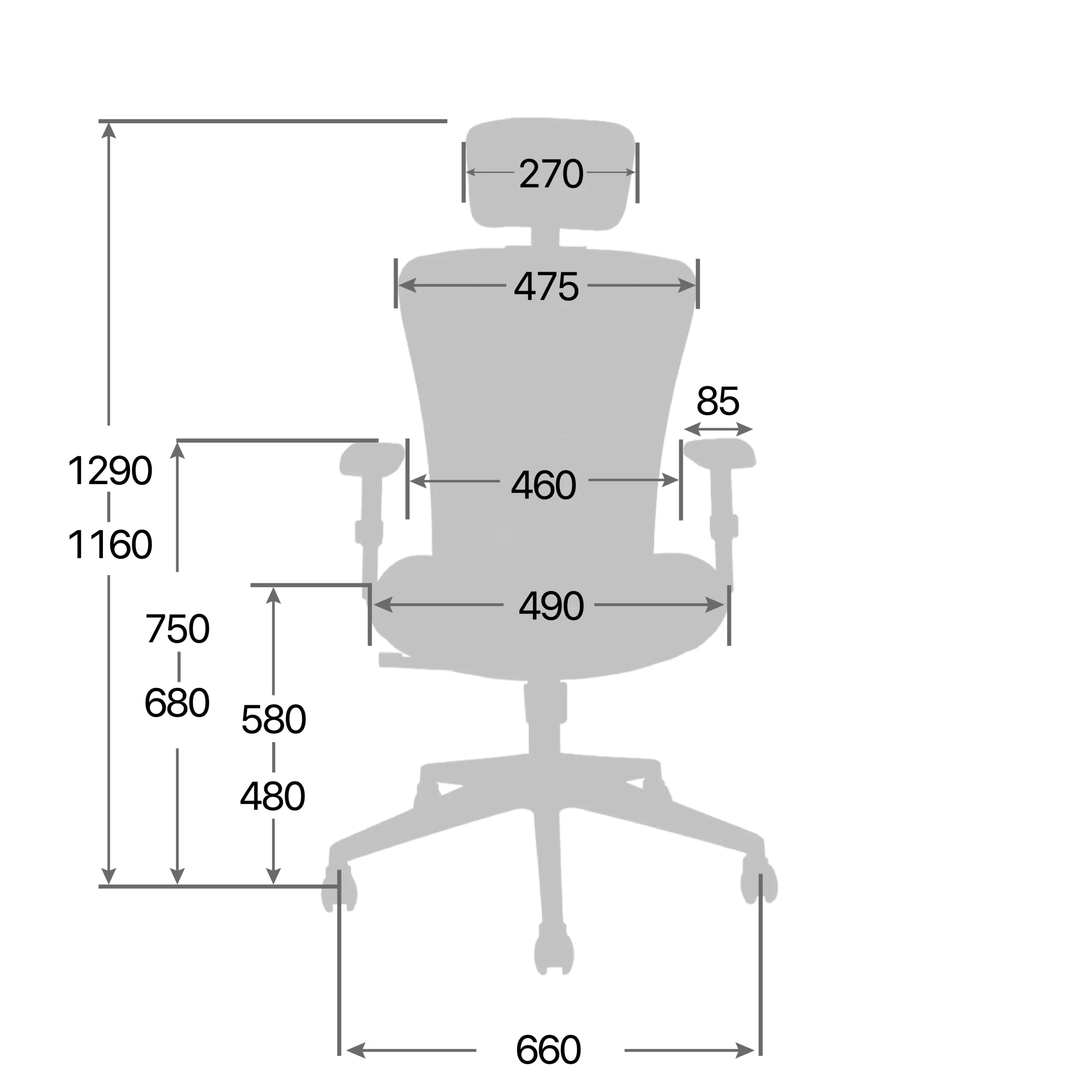 Arm Height from Floor: 680 – 750 (mm)