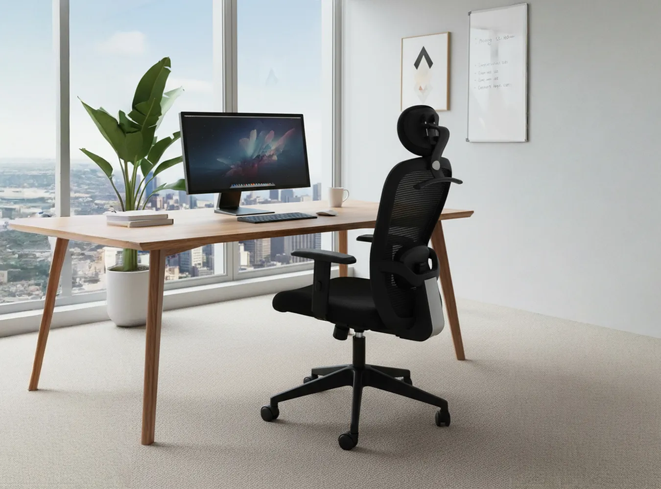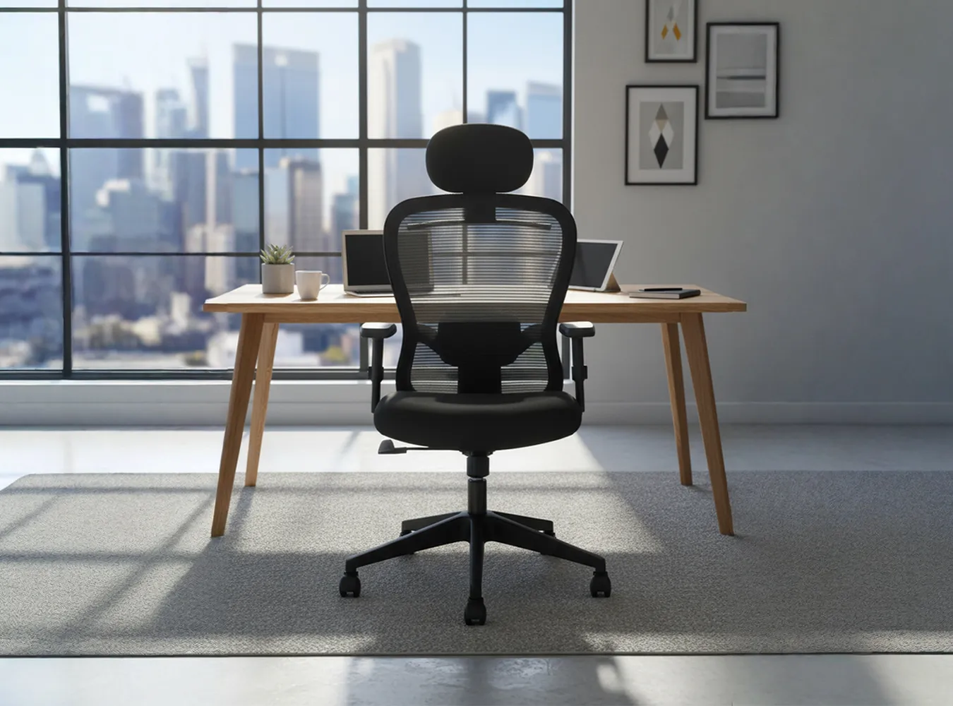 The mesh backrest provides firm, flexible support and promotes airflow, keeping you cool and comfortable during long working hours.