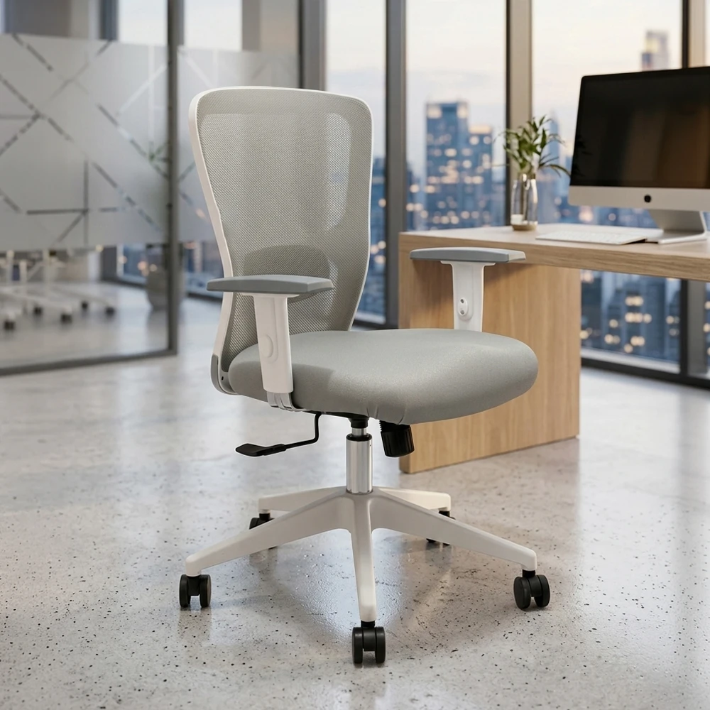Crafted for everyday comfort and ergonomic balance, the Jazz Medium Back Mesh Chair in grey offers breathable mesh support and a sleek, modern look. Its medium back design with adjustable lumbar support helps maintain proper posture, while smooth controls allow easy adjustments throughout the day. Comfortable, practical, and built for long hours of work.