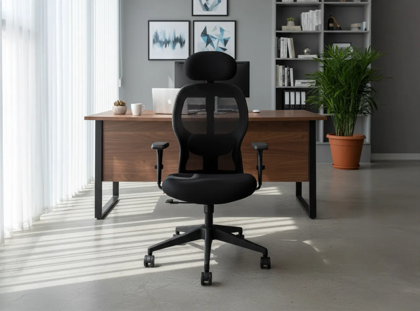 The mesh backrest promotes airflow and provides firm yet flexible support, keeping you cool, fresh, and comfortable even during extended sitting.
